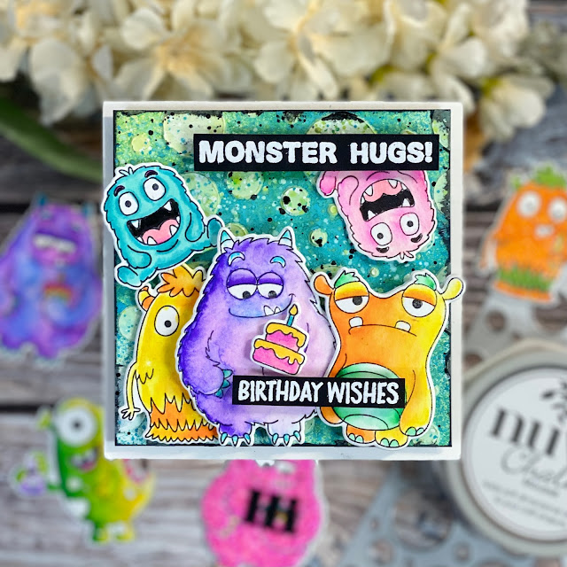 This card is all about the composition and that gorgeous little grumpy monster - he's my favorite piece of the entire set!