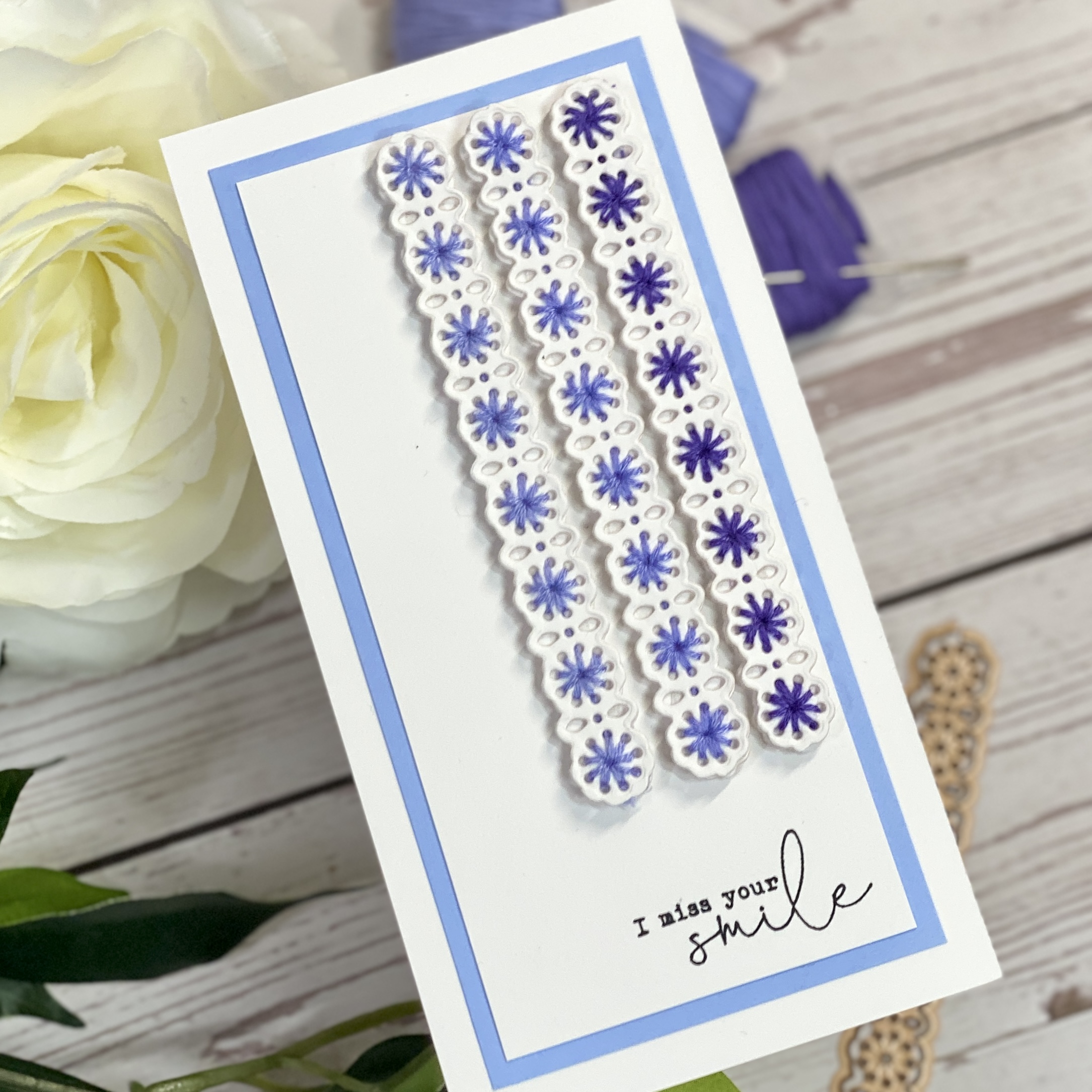 - Die cut 6 small stitched borders, but only cut the detail into three.
